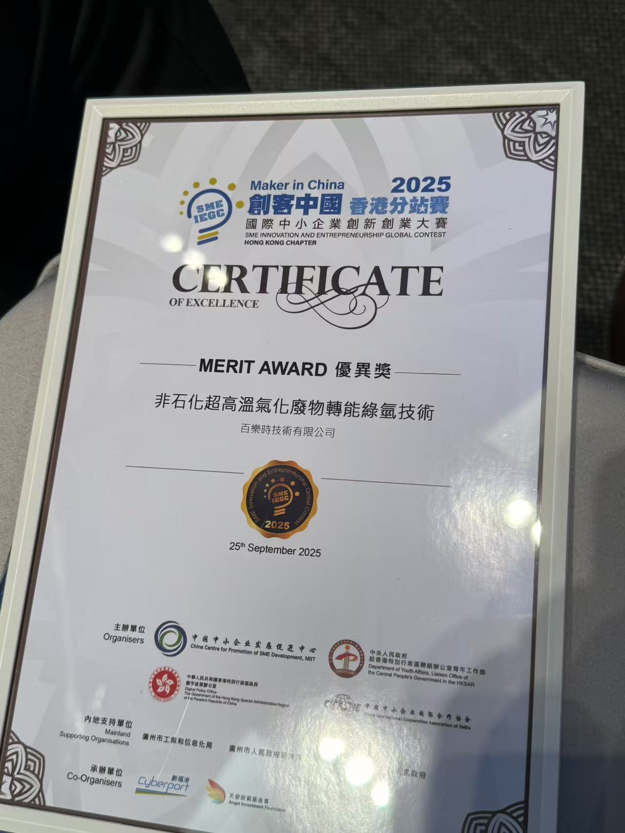 [HONG KONG, CHINA, 25th SEP, 2025] – PyrolSys Technology Limited, a company dedicated to Non-Petrochemical Ultra-High-Temperature Waste-to-Energy Green Hydrogen Technology, is proud to announce that it has been awarded the Merit Award at the Maker In China 2025 Hong Kong Chapter championship. This recognition highlights the company’s commitment to technological innovation and its potential to make a significant impact in the industry.